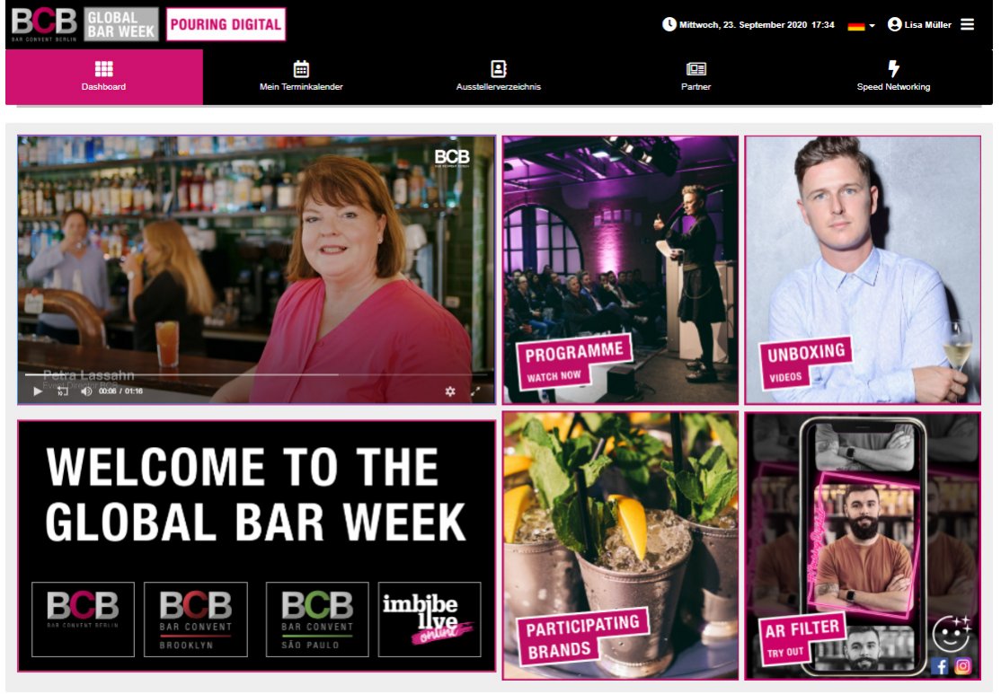 Whether it's via BCB Berlin, BCB Brooklyn, BCB São Paolo or Imbibe Live - when it comes to networking, it doesn't matter which of the events visitors sign up to for Global Bar Week, they will still be able to connect with all exhibiting brands. The profiles of the participants will be precisely matched thanks to industry-specific and interest-based filter options. Virtual meetings at Global Bar Week will feel just like a face-to-face meeting at a physical event, with video functionality and the exchange of contact details will be even more efficient than the swapping of business cards.